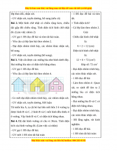 - Giải quyết được một số tình huống thực tế liên quan đến chu vi, diện tích các hình đã học.