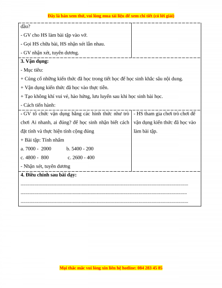 - HS thực hiện được phép trừ các số có đến bốn chữ số (có nhớ không quá hai lượt và không liên tiếp).