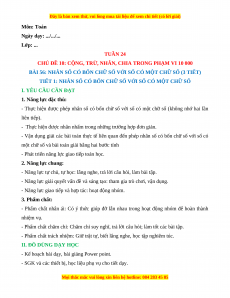 CHỦ ĐỀ 10: CỘNG, TRỪ, NHÂN, CHIA CÁC SỐ TRONG PHẠM VI 10 000 (2 TIẾT)