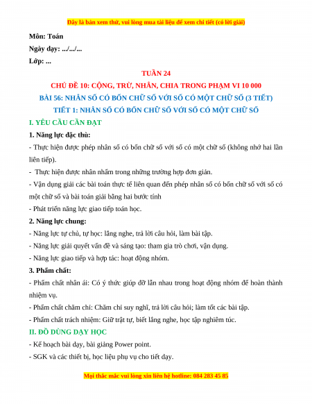 - Vận dụng giải các bài toán thực tế liên quan đến phép nhân số có bốn chữ số với số có