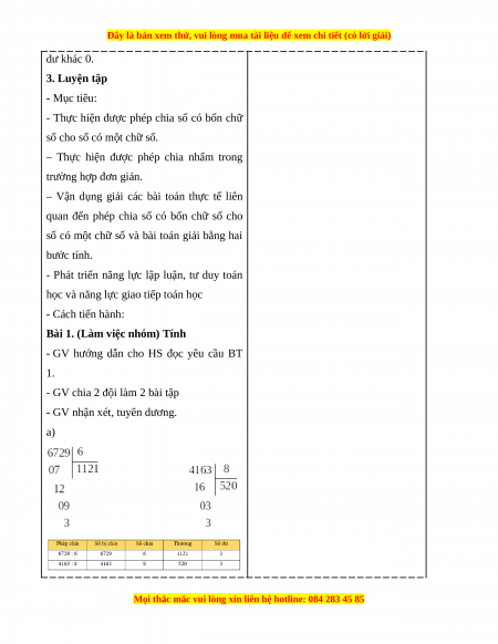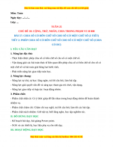 - Vận dụng giải các bài toán thực tế liên quan đến phép chia số có bốn chữ số cho số có