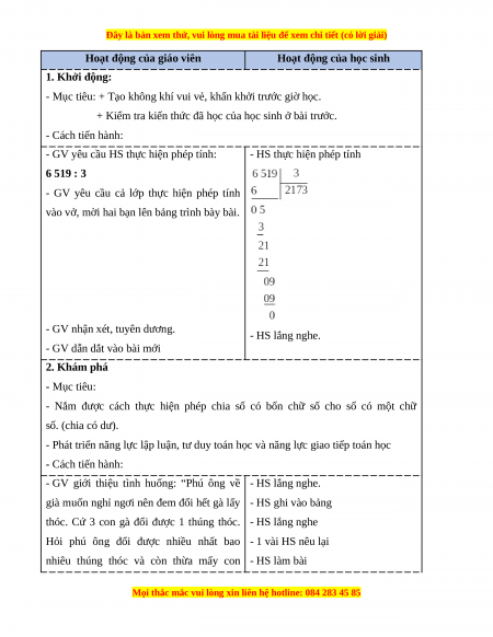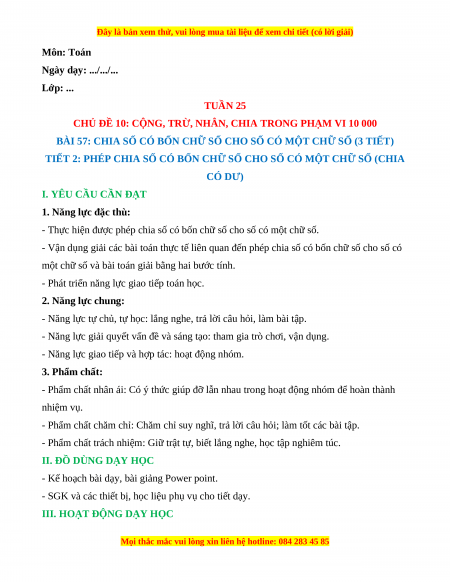 BÀI 57: CHIA SỐ CÓ BỐN CHỮ SỐ CHO SỐ CÓ MỘT CHỮ SỐ (3 TIẾT)