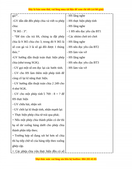 -GV hướng dẫn thuật toán thực hiện phép - HS lắng nghe chia (như trong SGK).