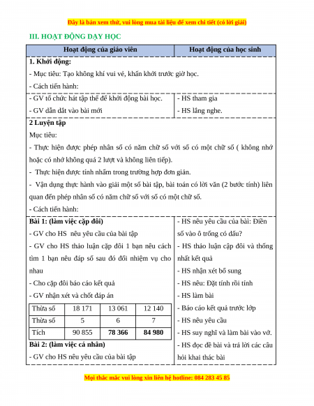quan đến phép nhân số có năm chữ số với số có một chữ số. - Cách tiến hành: