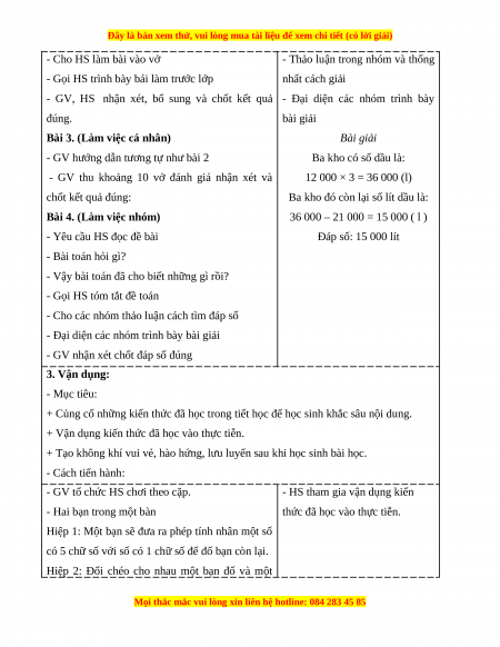 - Vận dụng thực hành vào giải một số bài tập, bài toán có lời văn (2 bước tính) liên quan