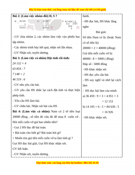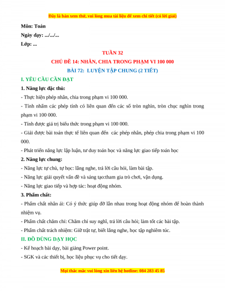 - Giải được bài toán thực tế liên quan đến các phép nhân, phép chia trong phạm vi 100 000.