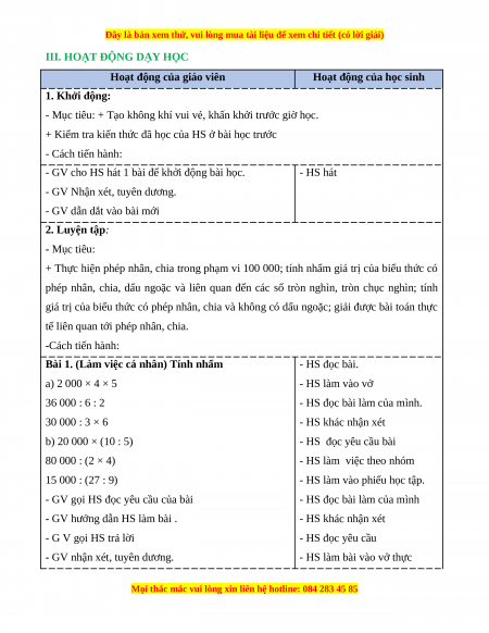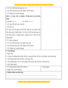 + Thực hiện phép nhân, chia trong phạm vi 100 000; tính nhẩm giá trị của biểu thức có