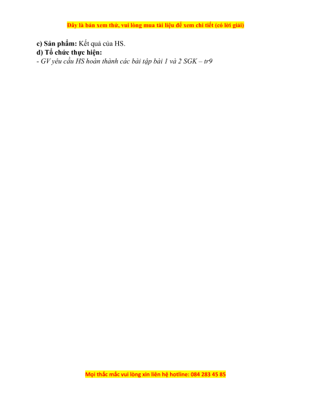 - GV yêu cầu HS hoàn thành các bài tập bài 1 và 2 SGK – tr9
