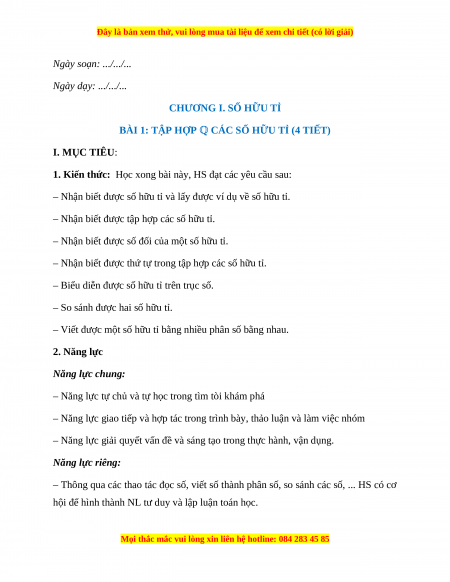 BÀI 1: TẬP HỢP CÁC SỐ HỮU TỈ (4 TIẾT)ℚ