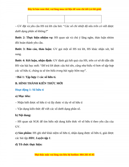 c) Sản phẩm: HS ghi nhớ khái niệm số hữu tỉ, nhận dạng được số hữu tỉ, giải được
