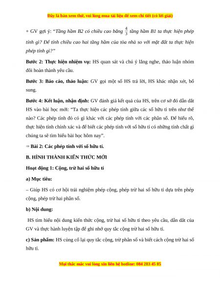– HS hình thành nhu cầu sử dụng phép tính với số hữu tỉ.