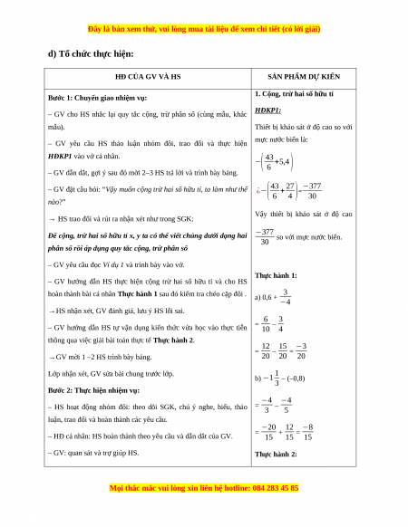 – GV hướng dẫn HS thực hiện cộng trừ hai số hữu tỉ và cho HS