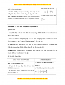 – Giúp HS có cơ hội trải nghiệm phép cộng, phép trừ hai số hữu tỉ dựa trên phép