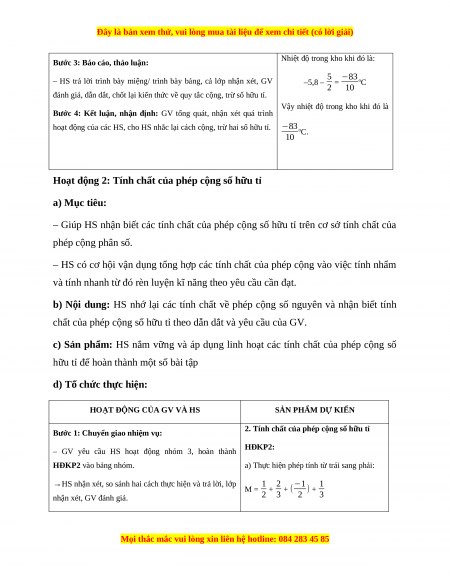Hoạt động 1: Cộng, trừ hai số hữu tỉ a) Mục tiêu: