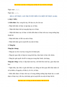 – Nhận biết được giá trị tuyệt đối của một số thực. 2. Năng lực Năng lực chung:
