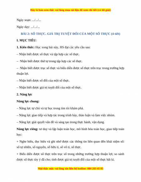 BÀI 2: SỐ THỰC. GIÁ TRỊ TUYỆT ĐỐI CỦA MỘT SỐ THỰC (4 tiết) I. MỤC TIÊU: