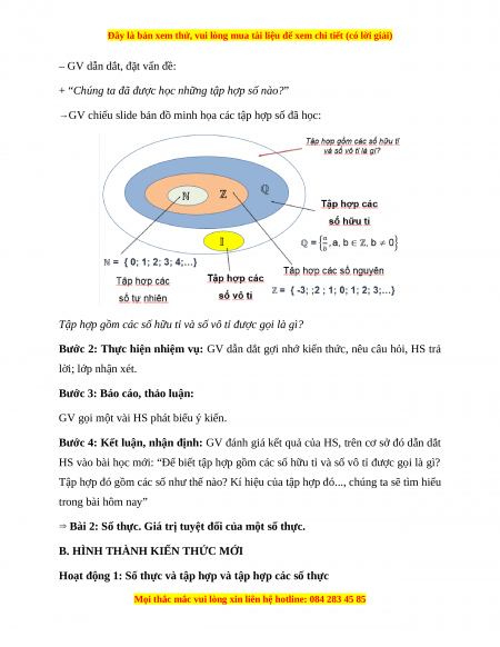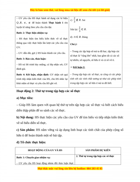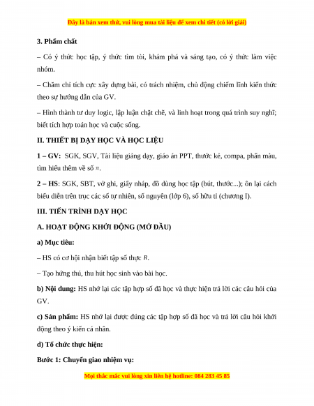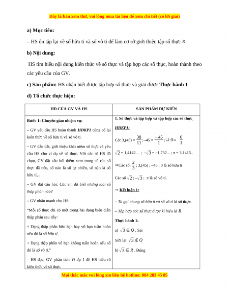– HS ôn tập lại về số hữu tỉ và số vô tỉ để làm cơ sở giới thiệu tập số thực R. b) Nội dung: