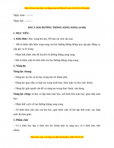 – Mô tả được một số tính chất của hai đường thẳng song song. 2. Năng lực Năng lực chung:
