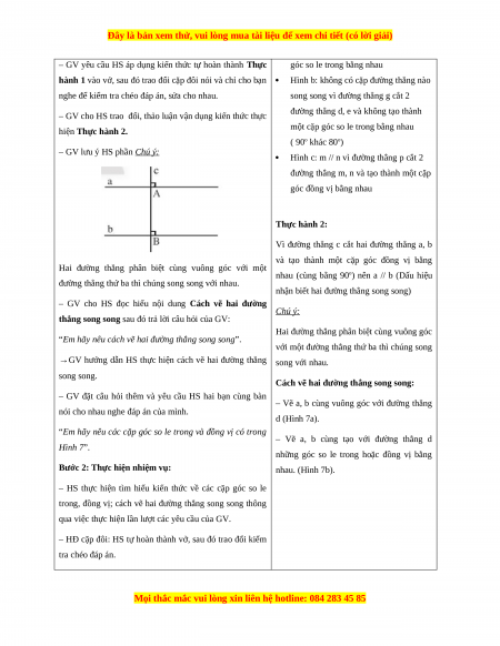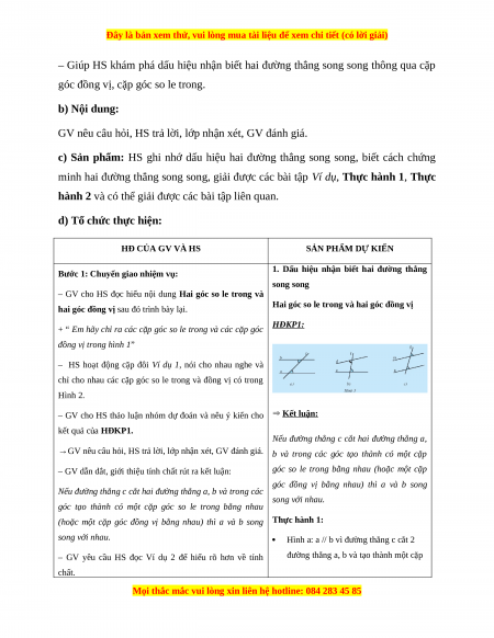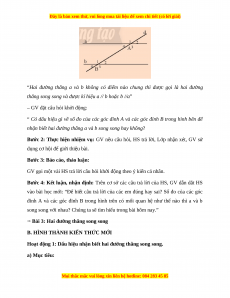 – Mô tả được dấu hiệu song song của hai đường thẳng thông qua cặp góc đồng vị, cặp góc so le trong.