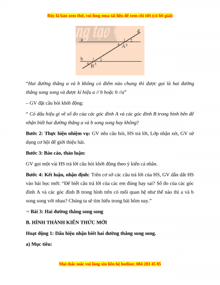 Giáo án Toán 7 Chân trời sáng tạo Bài 3: Hai đường thẳng song song
