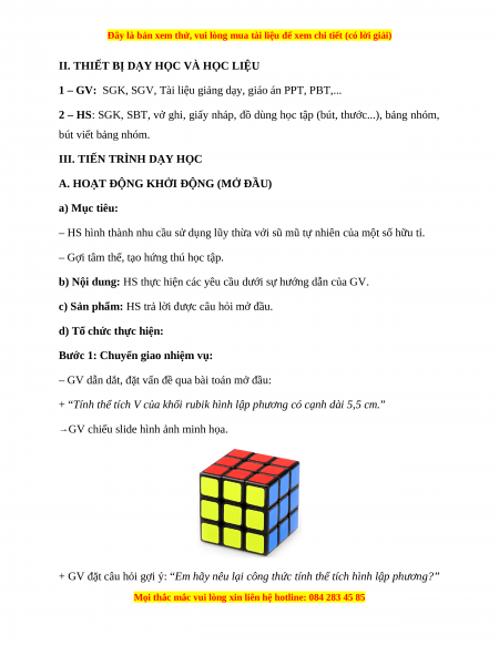 + “Tính thể tích V của khối rubik hình lập phương có cạnh dài 5,5 cm.”