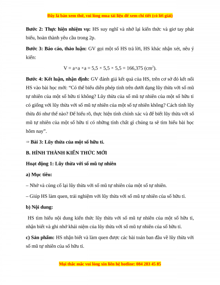 – HS hình thành nhu cầu sử dụng lũy thừa với sũ mũ tự nhiên của một số hữu tỉ.