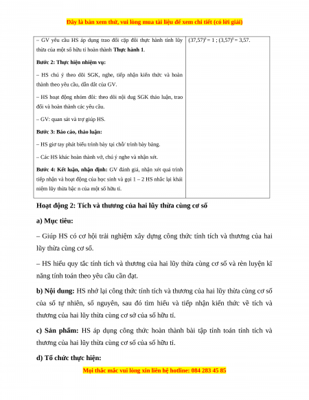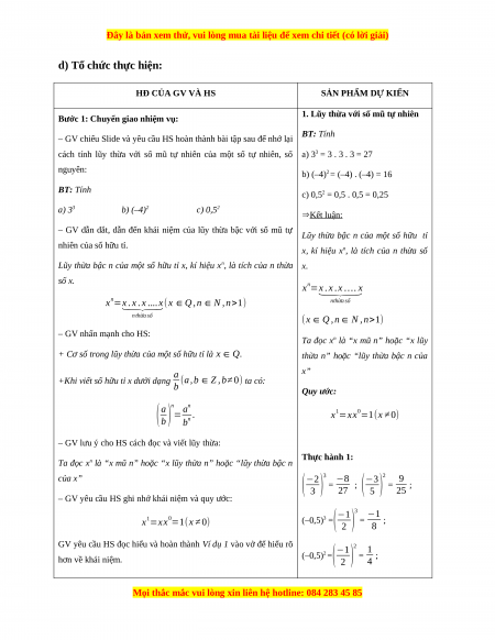 – Mô tả được phép tính lũy thừa với số mũ tự nhiên của một số hữu tỉ và một số