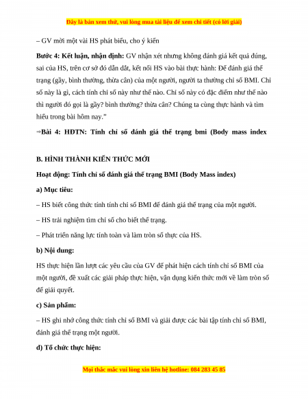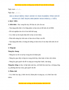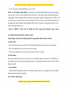 HĐTN: TÍNH CHỈ SỐ ĐÁNH GIÁ THỂ TRẠNG BMI (BODY MASS INDE