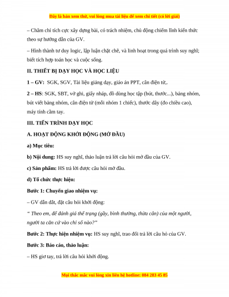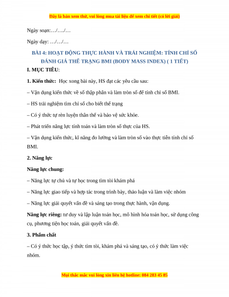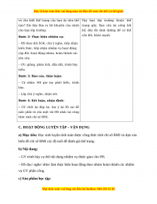– Vận dụng kiến thức, kĩ năng đo lường và làm tròn số vào thực tiễn tính chỉ số BMI. 2. Năng lực Năng lực chung: