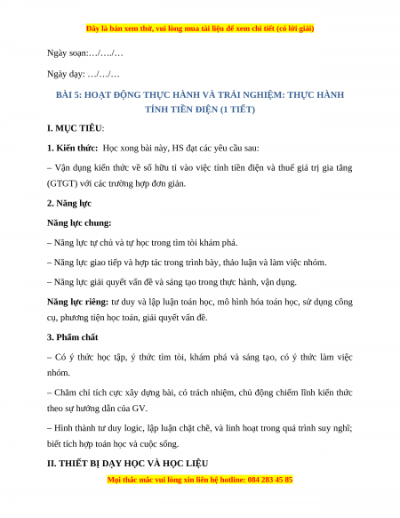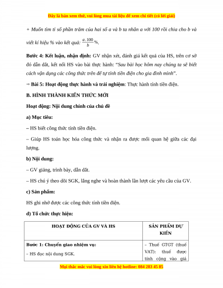 Giáo án Toán 7 Chân trời sáng tạo Bài 5: Hoạt động thực hành và trải nghiệm: Thực hành tính tiền điện