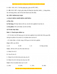 A. HOẠT ĐỘNG KHỞI ĐỘNG (MỞ ĐẦU) a) Mục tiêu: