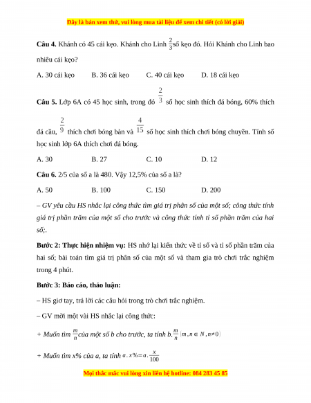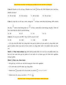 Câu 5. Lớp 6A có 45 học sinh, trong đó số học sinh thích đá bóng, 60% thích