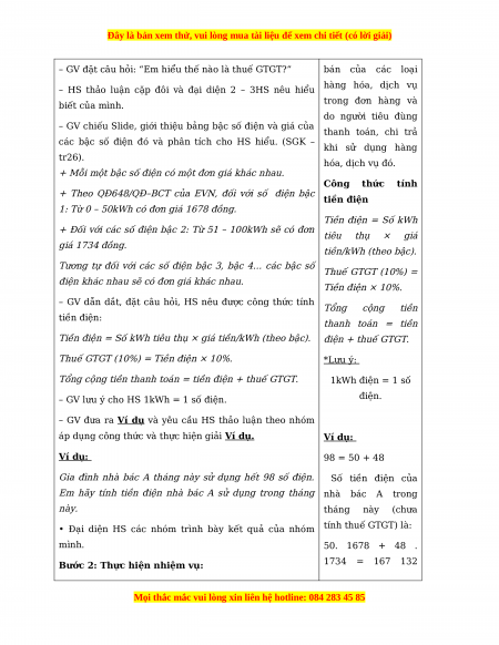 – Vận dụng kiến thức về số hữu tỉ vào việc tính tiền điện và thuế giá trị gia tăng