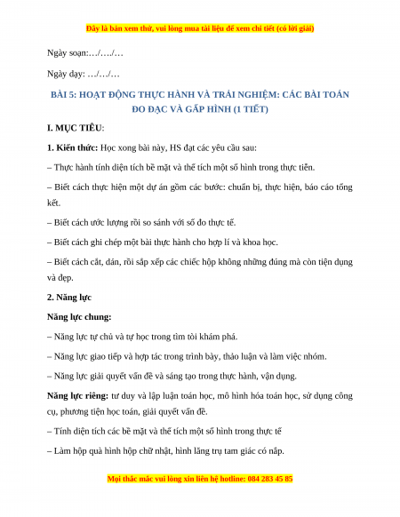 ĐO ĐẠC VÀ GẤP HÌNH (1 TIẾT)