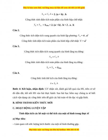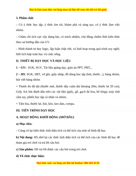 Tính diện tích các bề mặt và thể tích của một số hình trong thực tế a) Mục tiêu: