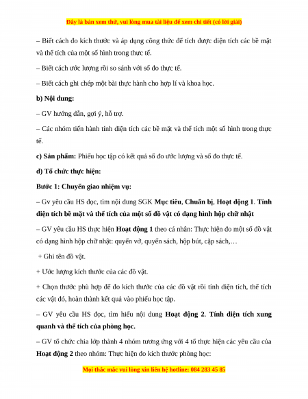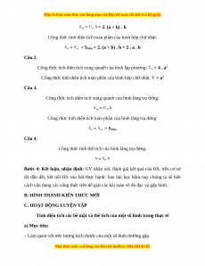 – Thực hành tính diện tích bề mặt và thể tích một số hình trong thực tiễn.
