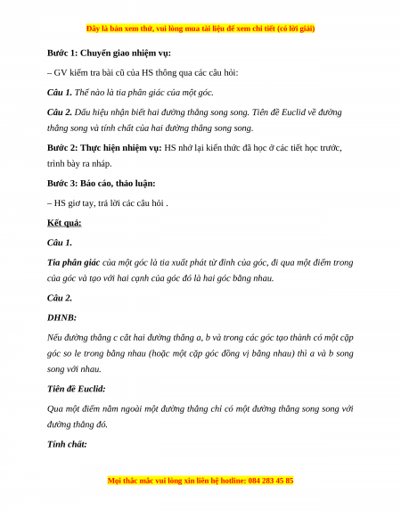 Câu 2. Dấu hiệu nhận biết hai đường thẳng song song. Tiên đề Euclid về đường