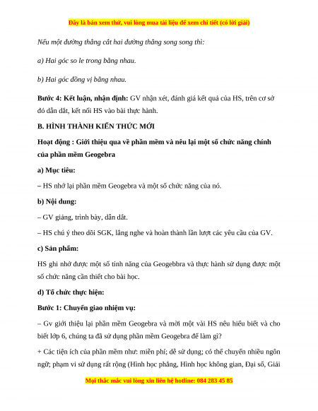 Giáo án Toán 7 Chân trời sáng tạo Bài 5: Hoạt động thực hành và trải nghiệm: Vẽ hai đường thẳng song song và đo góc bằng phần mềm GeoGebra