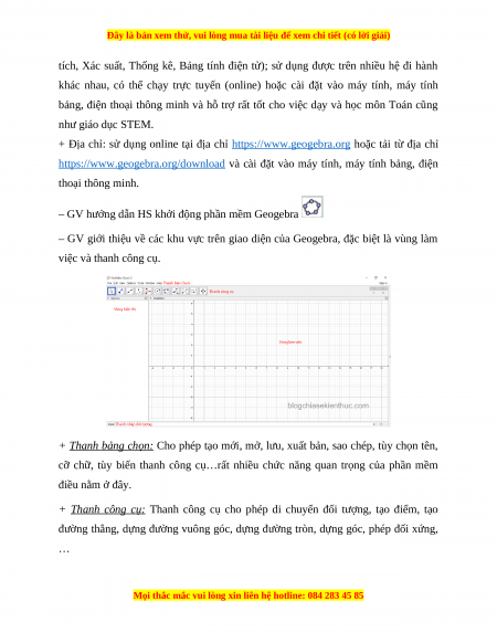 – Gv giới thiệu lại phần mềm Geogebra và mời một vài HS nêu hiểu biết và cho