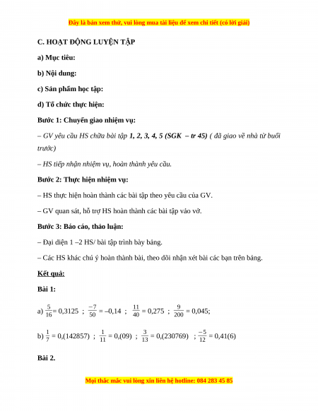 C. HOẠT ĐỘNG LUYỆN TẬP a) Mục tiêu: b) Nội dung: