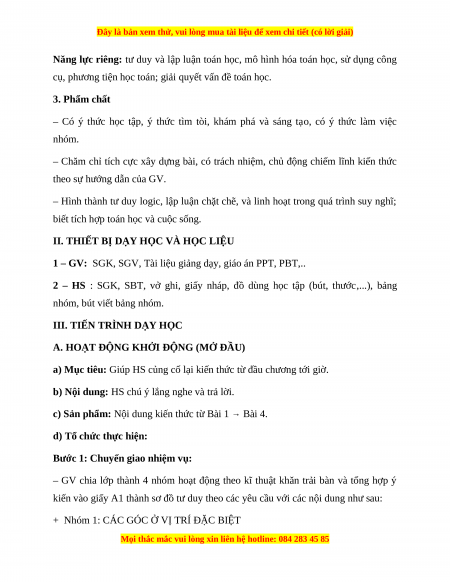 cụ, phương tiện học toán; giải quyết vấn đề toán học. 3. Phẩm chất