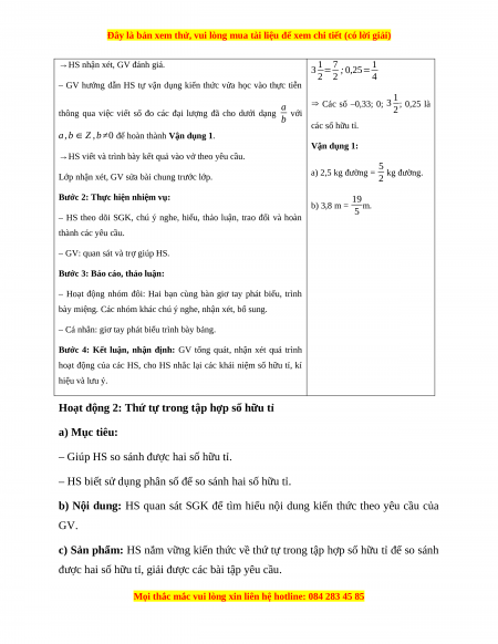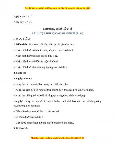 – Nhận biết được thứ tự trong tập hợp các số hữu tỉ. 2. Năng lực Năng lực chung: