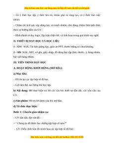 A. HOẠT ĐỘNG KHỞI ĐỘNG (MỞ ĐẦU) a) Mục tiêu: