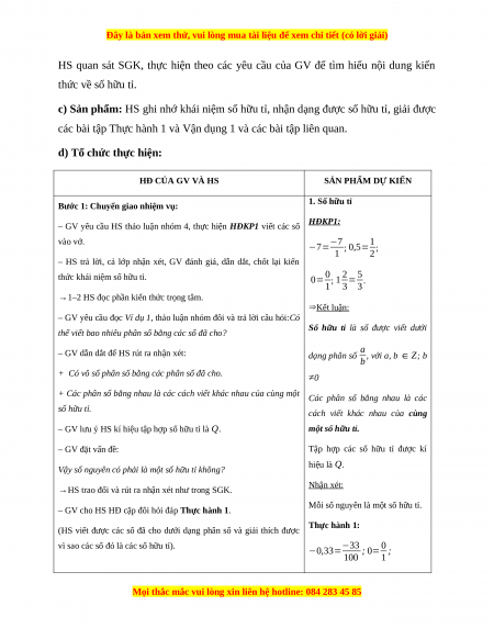 c) Sản phẩm: HS ghi nhớ khái niệm số hữu tỉ, nhận dạng được số hữu tỉ, giải được