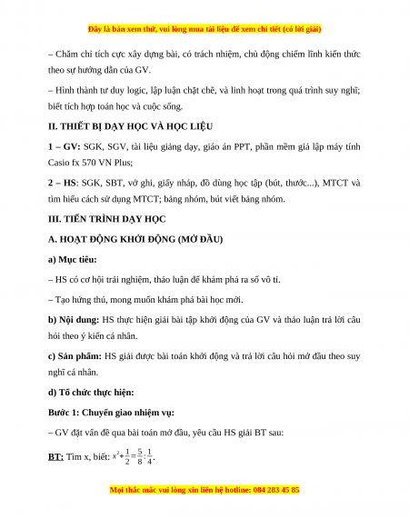 1 – GV: SGK, SGV, tài liệu giảng dạy, giáo án PPT, phần mềm giả lập máy tính Casio fx 570 VN Plus;