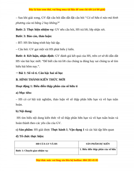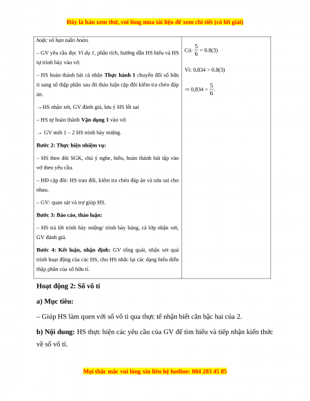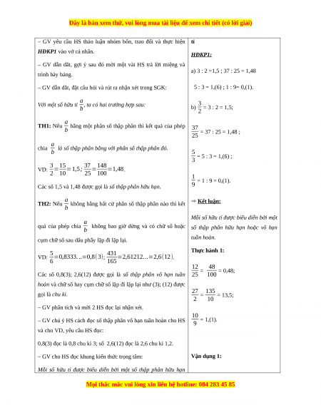 – HS có cơ hội trải nghiệm, thảo luận về số thập phân hữu hạn và vô hạn tuần hoàn. b) Nội dung: