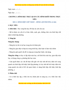 xung quanh của một số đồ vật quen thuộc có dạng hình hộp chữ nhật, hình lập phương,..) 3. Phẩm chất