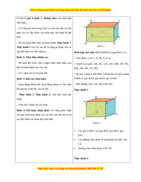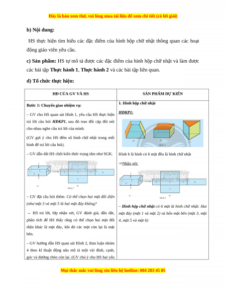 HS thực hiện tìm hiểu các đặc điểm của hình hộp chữ nhật thông quan các hoạt
