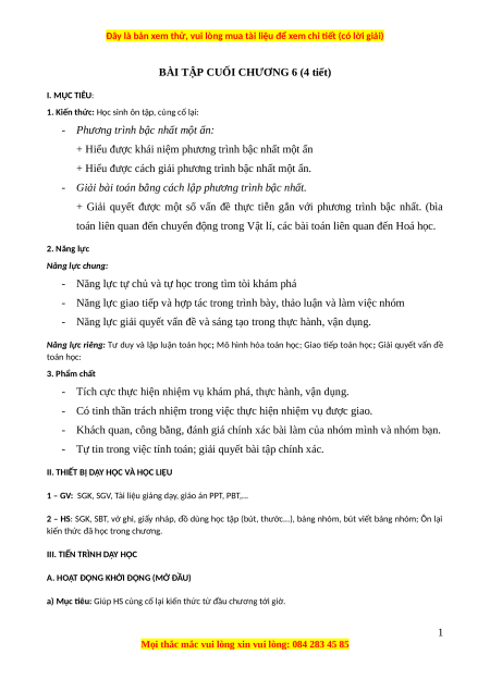 BÀI TẬP CUỐI CHƯƠNG 6 (4 tiết) I. MỤC TIÊU: