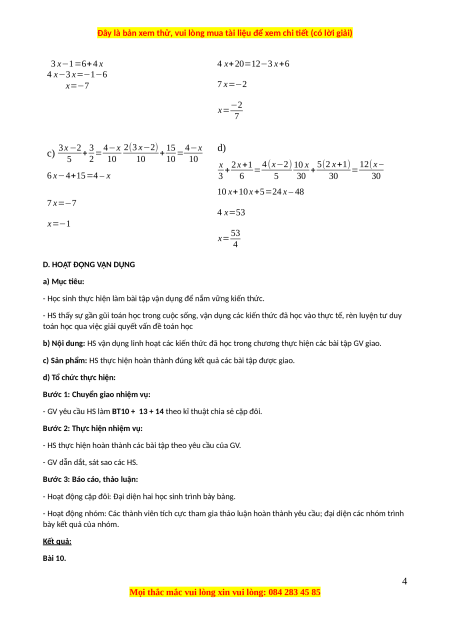 D. HOẠT ĐỘNG VẬN DỤNG a) Mục tiêu: